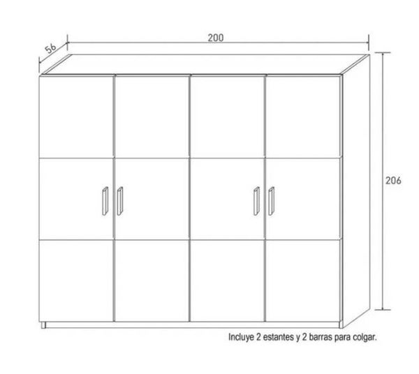 El armario de 200cm Monika es un modelo económico y amplio, con gran altura y capacidad. Disponible en tres colores: andersen pino-gris, cambria-blanco y cambria-gráfito. Formato KIT. Fácil montaje.